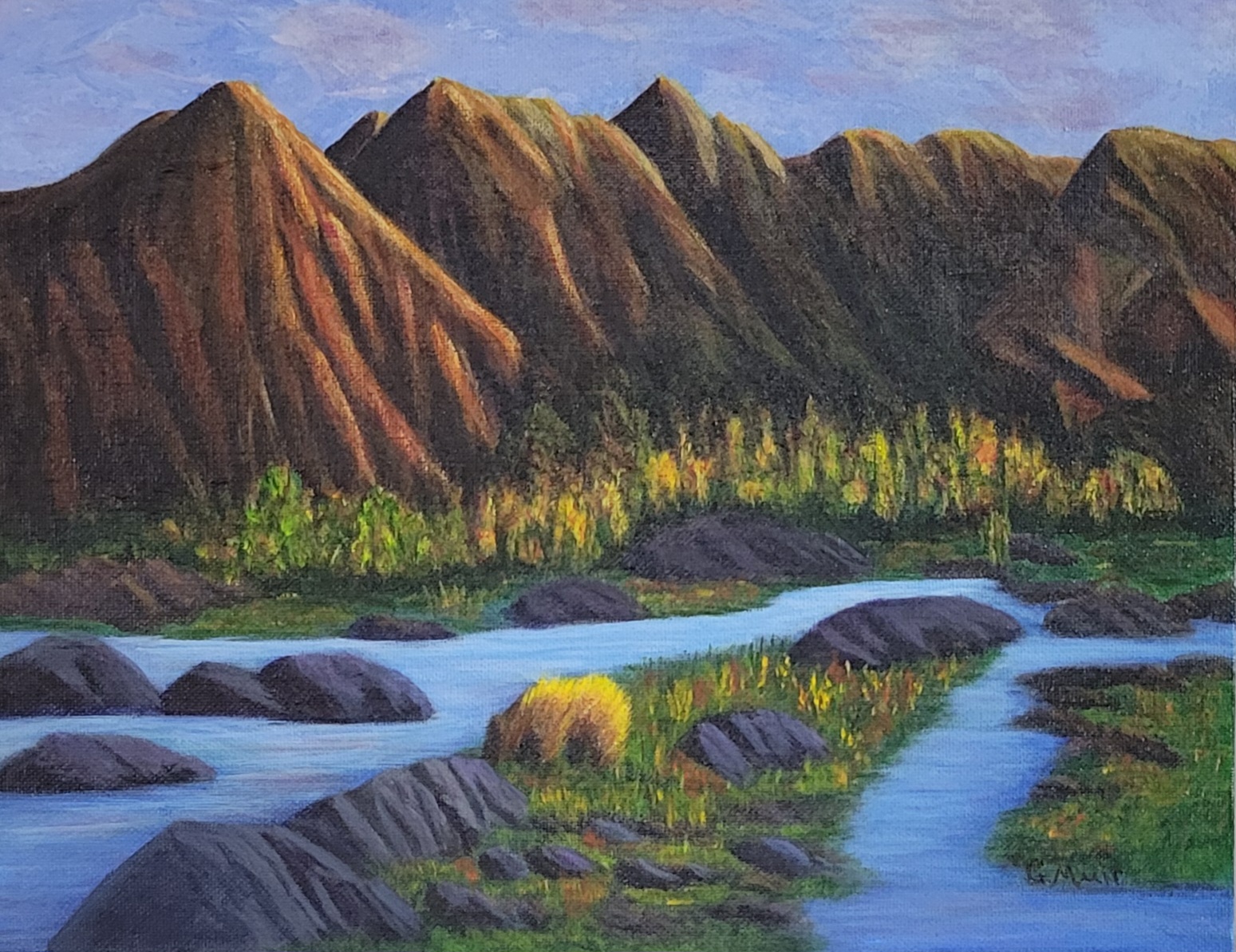 Gillian paints for fun and to challenge herself. She likes to explore new mixes of colours and new textures. Since she has lived in many places in BC, her paintings tend to be a mix of sights and scenes that she has known. No two paintings, while they may be similar, are ever the same.She wants to share the resluts of her experiments with you and hope you enjoy them too. Feedback is welcomed. |